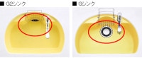 「G2シンク」と「Gシンク」では排水口の形状が異なります。上の画像に示した赤丸の部分をご確認ください。